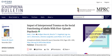 Stain, H. J., Brønnick, K., Hegelstad, W. T., Joa, I., Johannessen, J. O., Langeveld, J., Mawn, L., & Larsen, T. K. (2014). Impact of interpersonal trauma on the social functioning of adults with first-episode psychosis. Schizophrenia Bulletin, 40(6), 1491–1498.